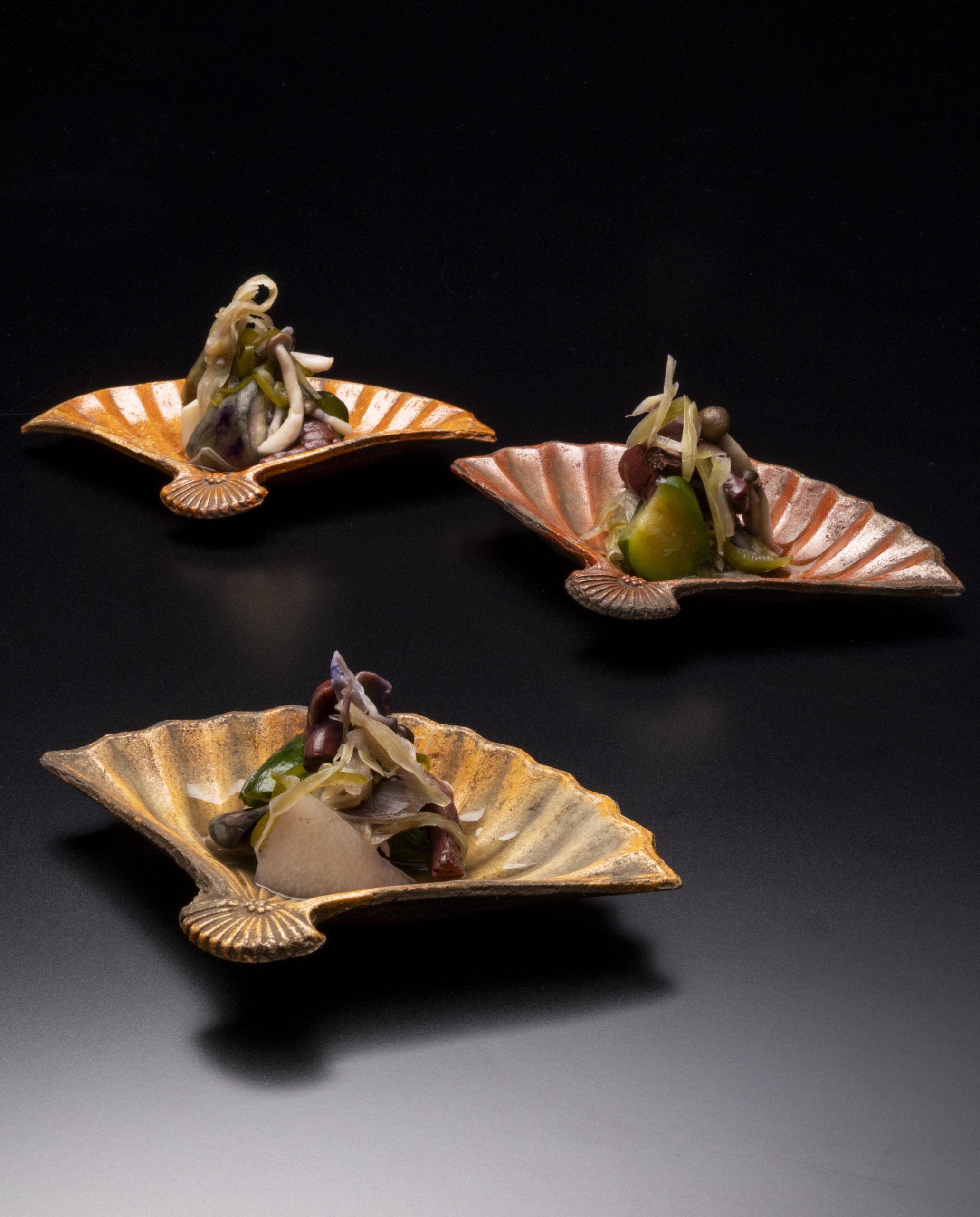 Shigaraki Ware・Ogawa Tokusai Fan-shaped Plates Early 19C/Edo period