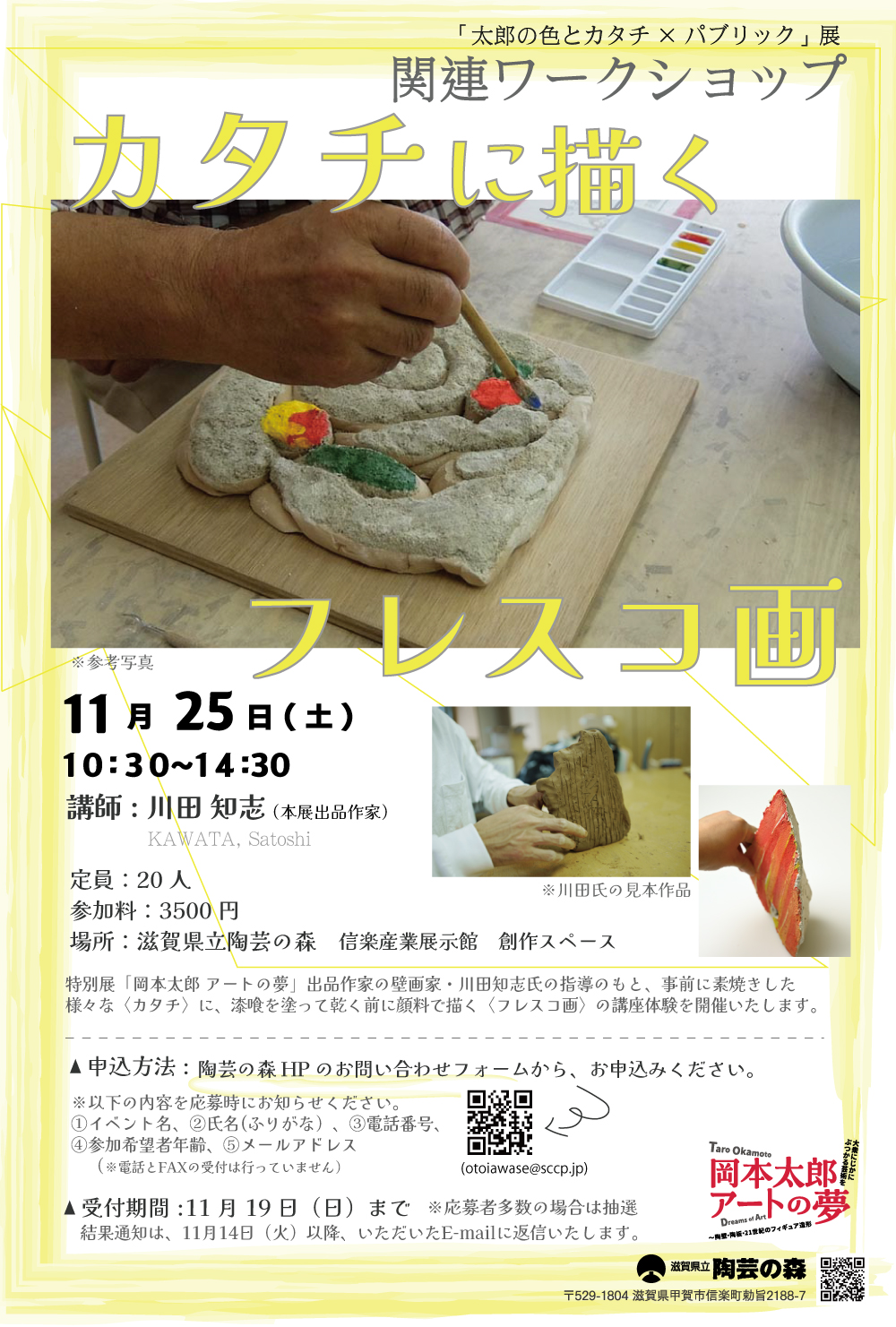 特別展「岡本太郎 アートの夢」出品作家の壁画家・川田知志氏の指導のもと、事前に素焼きした