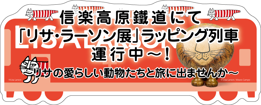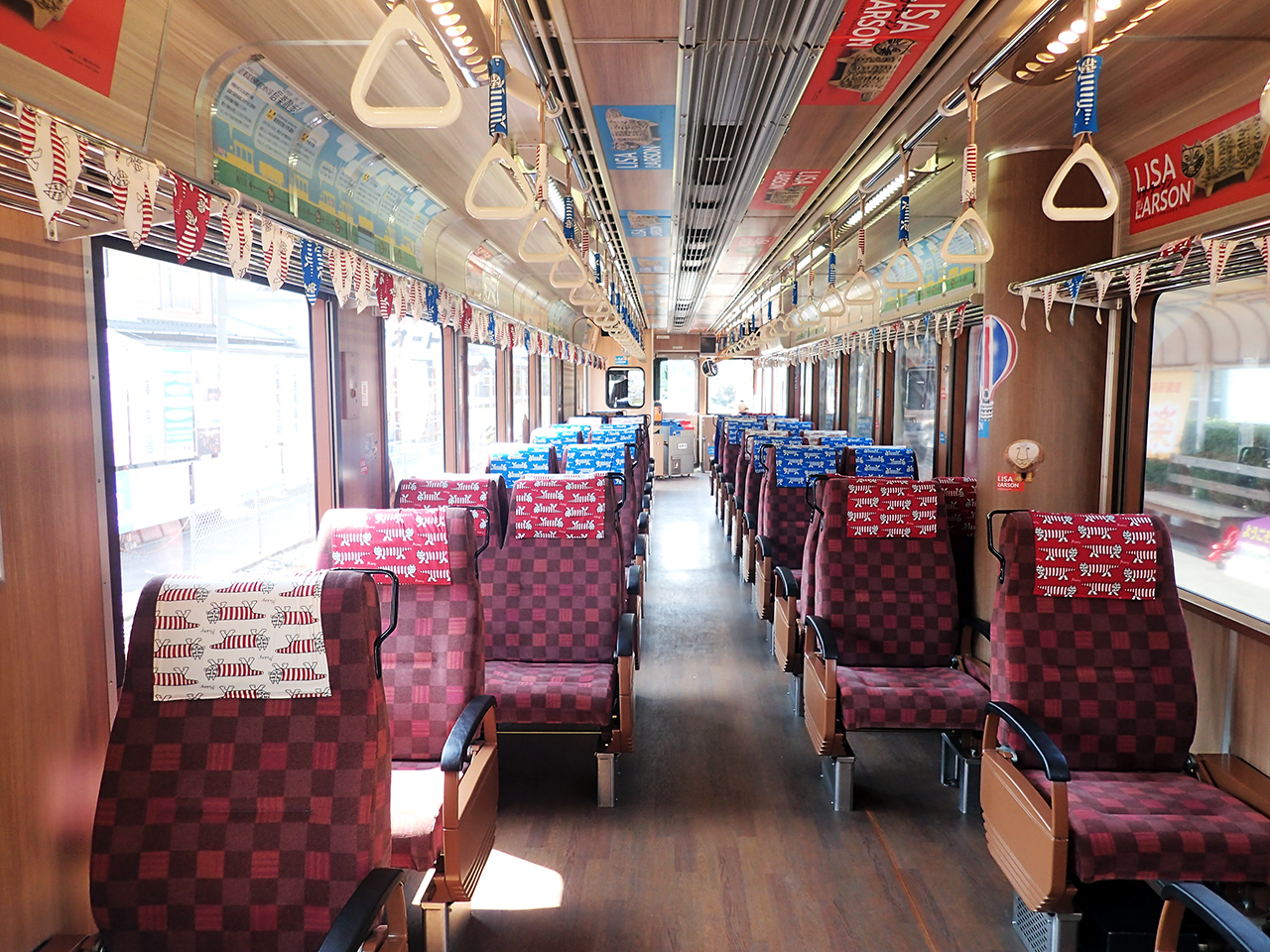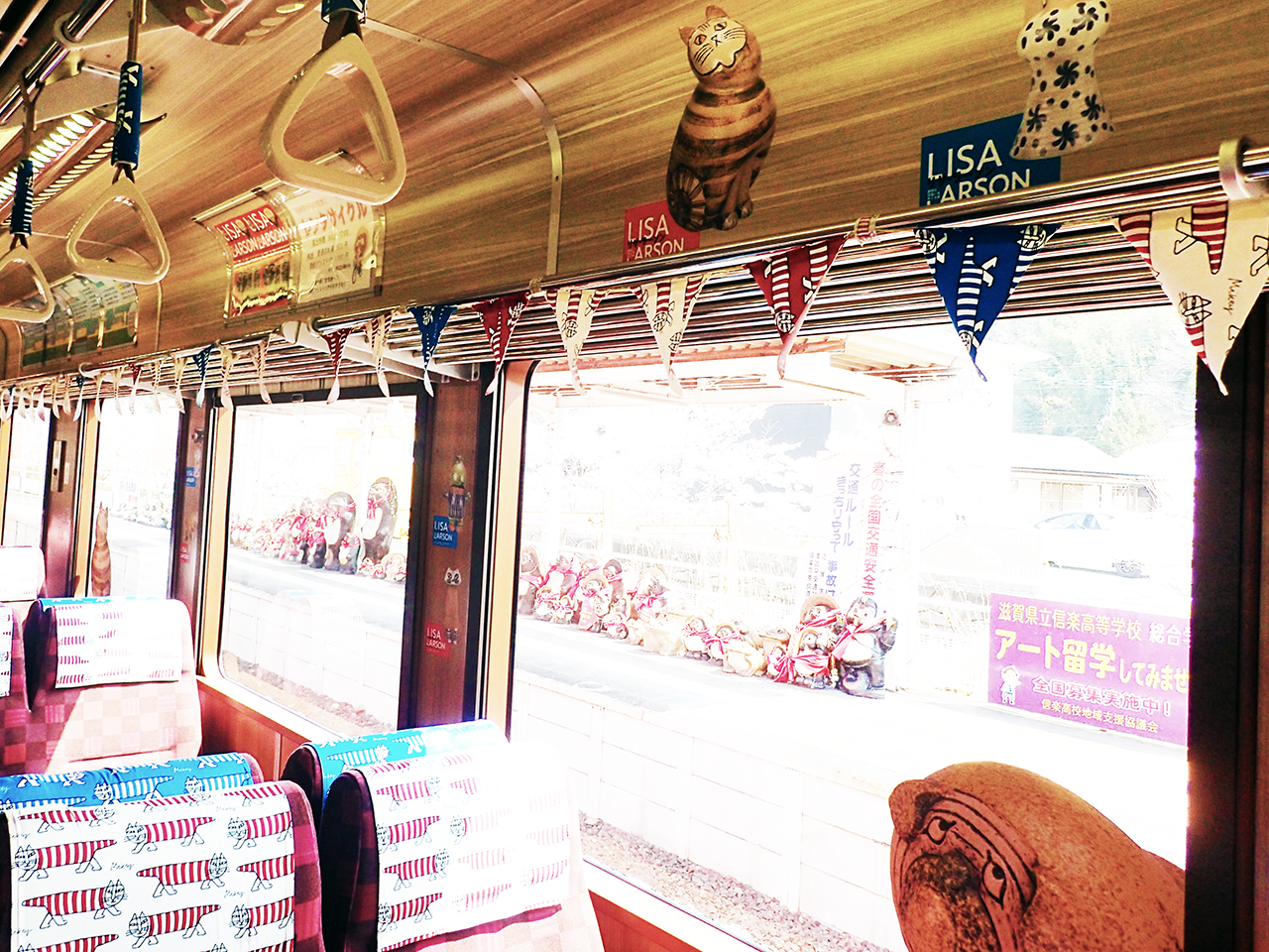 信楽高原鐵道では、令和2年3月25日(水)より開催している特別展「リサ・ラーソン-創作と出会いをめぐる旅」の関連イベントとして、リサ・ラーソンの代表作である動物シリーズをはじめとした作品を車内外にデザインしたラッピング列車を運行しています。桜が満開のこの時期に、リサの動物たちと共に列車旅を楽しんでみませんか。車内の様子も少し公開します!
