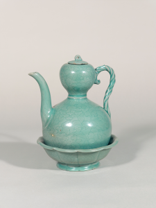 《青磁陰刻牡丹唐草文瓢形水注・承盤》