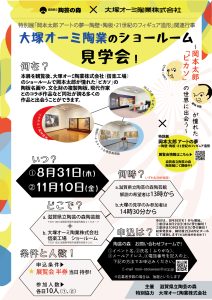 本展に協力・出品いただいている「大塚オーミ陶業株式会社」のショールームで陶板名画や文化財の複製陶板、現代作家とのコラボ作品など同社が誇る多くの作品にふれていただきます。