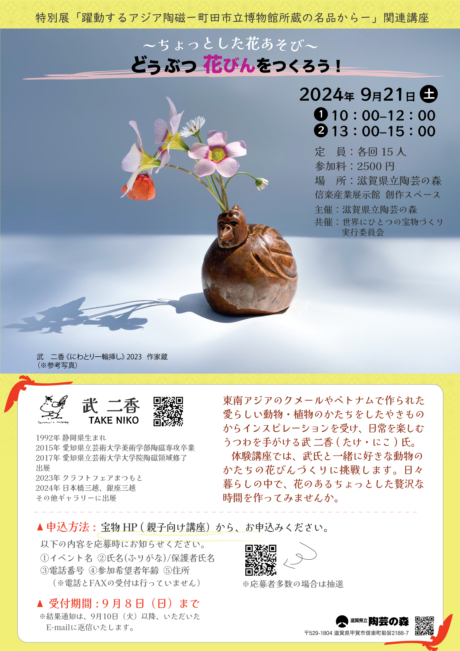 (2)関連体験講座「~ちょっとした花あそび~どうぶつ花びんをつくろう!」【事前申込・抽選制】