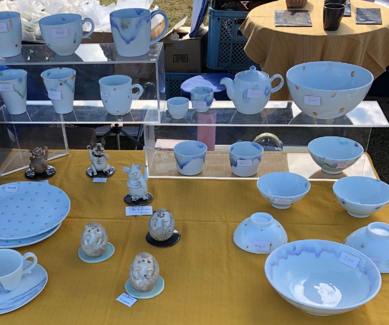 食卓に新鮮な感覚を演出する陶器(硬くなる土を使い丈夫に仕上げています)や使いやすい磁器、純子のほっこり和む器を出品します。来年の干支の置物などや、展覧会で発表している新鮮な磁器の作品も是非ご覧ください。