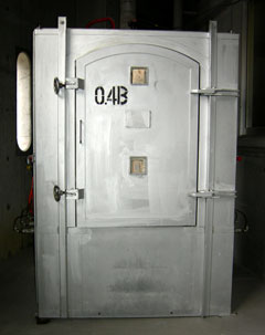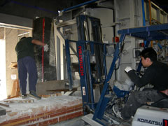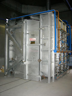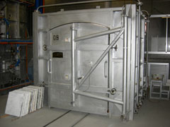 高さ2メートルあまりの大型作品まで焼成することができます。大型作品の窯詰め、窯出しにはフォークリフトを使用します。