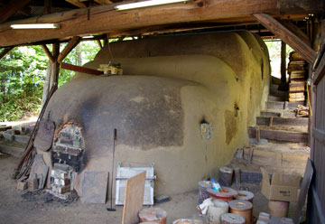 薪窯の景色を比較的容易に得られる小さい窯です。火が窯内で折り返すため、「行ってこい」の名がつけられています。灯油と雑木で焚くことができます。