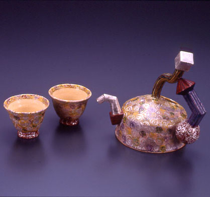 Sake Set with Eddying current and Arabesque Design, Overglaze Enamels