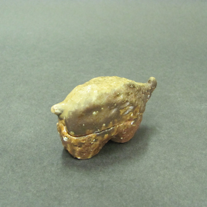 Shigaraki Wild Boar Shaped Incense Case with Natural Ash Glaze