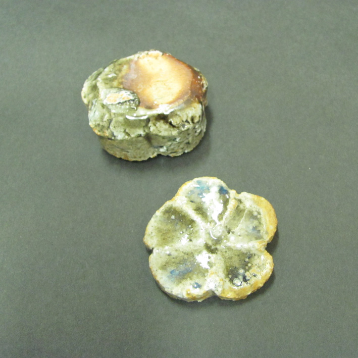 Shigaraki Flower Shaped Incense Container with Natural Ash Glaze