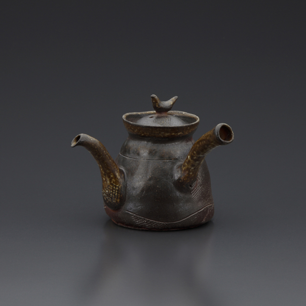Teapot with Sculptured Bird on the Lid with Natural Ash Glaze