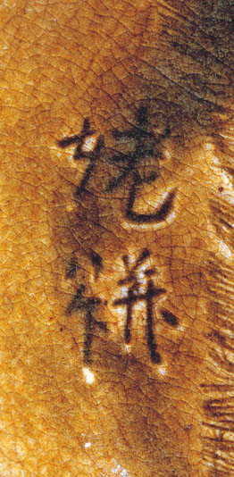 Small Plate with Cloth and Chrysanthemum Stamped Design,Yellow Glaze