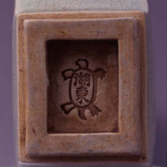 Celadon Handled Flower Vase with OMI-HAKKEI (Celebrated Places in Omi) Design, Overglaze Enamels