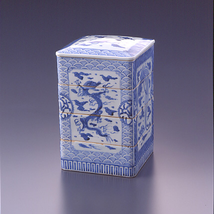 Nest of Boxes with Dragon and Phoenix Design,Underglaze Blue