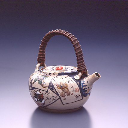 Earthenware Teapot with Otsu Style Paintings Design, Overglaze Enamels