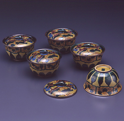 Lidded Bowl with Claud and Design, Underglaze Enamels