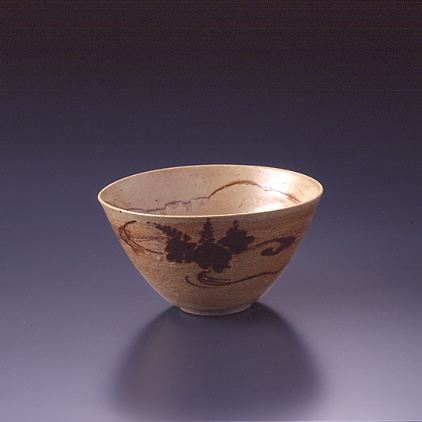 Tea Bowl with Paulownia Design, Underglaze Iron Brown
