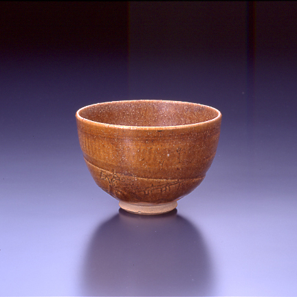 褐釉瀬田唐橋刻文茶碗