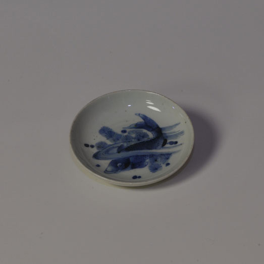 Small Plate with Fish and Seaweed Design, Underglaze Blue