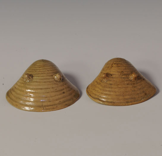 Red Corbicula Shaped Small Bowl in RAKU Style with OMI-HAKKEI(Celebrated Place in OMI) Design