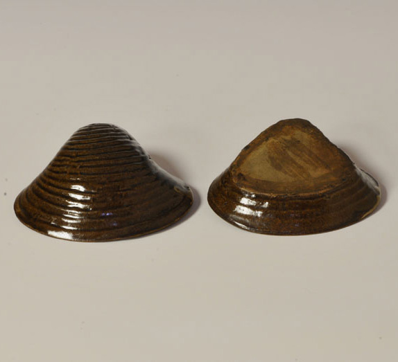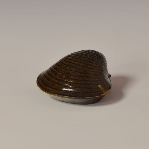 Corbicula Shaped Covered Box with OMI-HAKKEI(Celebrated Place in OMI) Design, Overglaze Enamels