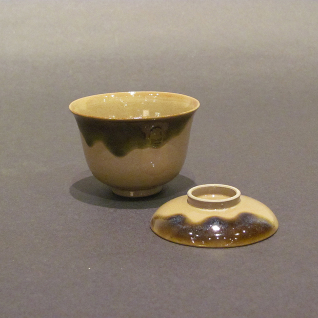 織部釉掛分蓋付碗