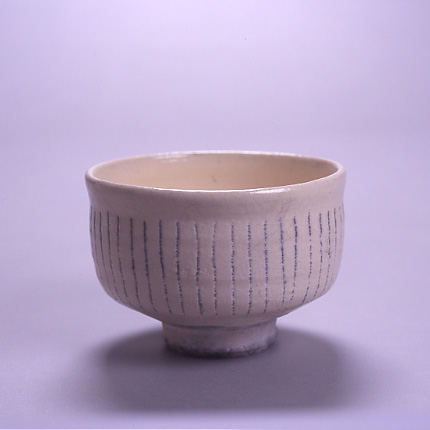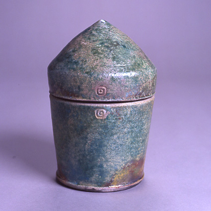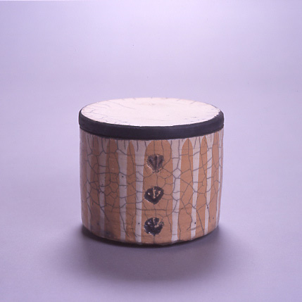 Cylindrical Lidded jar with Stamps and White Stripes Design