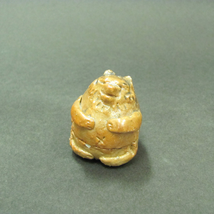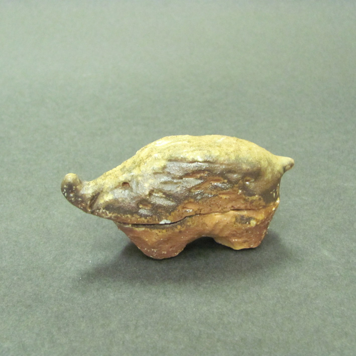 Shigaraki Wild Boar Shaped Incense Case with Natural Ash Glaze