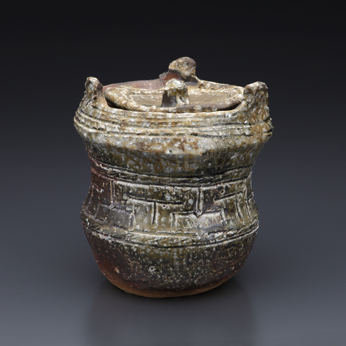 Shigaraki Loop pattern Water Jar with Natural Ash Glaze