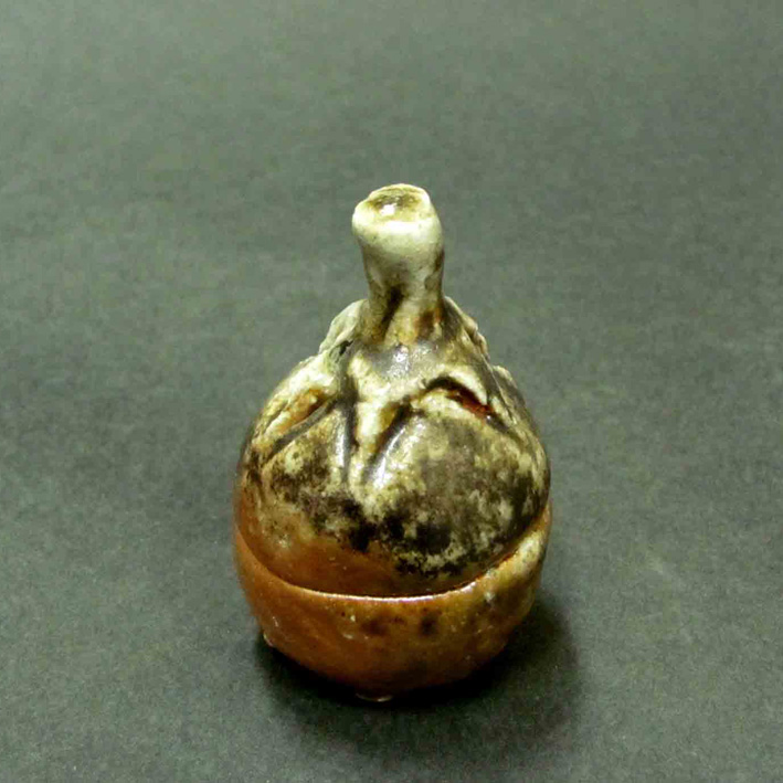 Shigaraki Eggplant Shaped Incense Case with Natural Ash Glaze