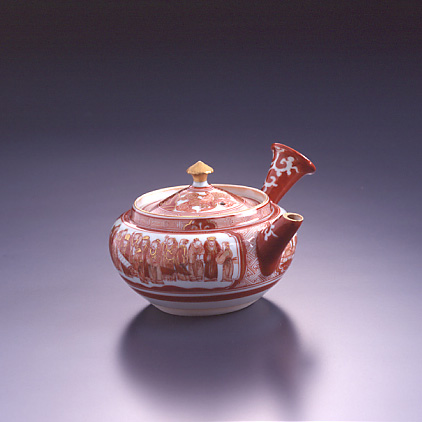 Tea Pot with Group of Super-human Design, Overglaze Red and Gold