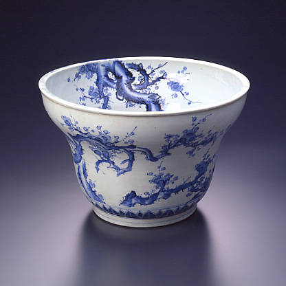 Fire Container in ANNAN style with Deer Design, Underglaze Blue