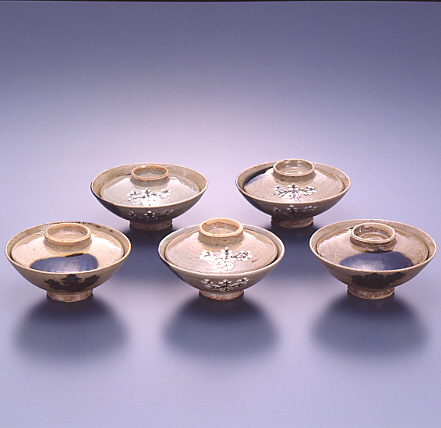 Lidded Rice Bowls with Paulownia Design, Underglaze Iron