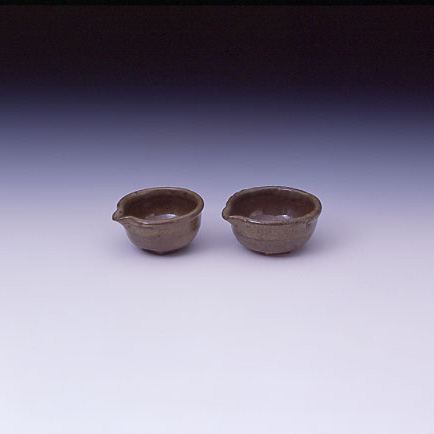 Straw Bag Shaped Sake Cups with Brown Glaze, Overglaze Enamels