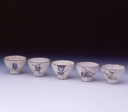 Tea Cups with Otsu Style Paintings Design, Overglaze Enamels