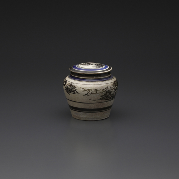 Lidded Bowl with Pine and Crane Design, Underglaze Iron and Blue