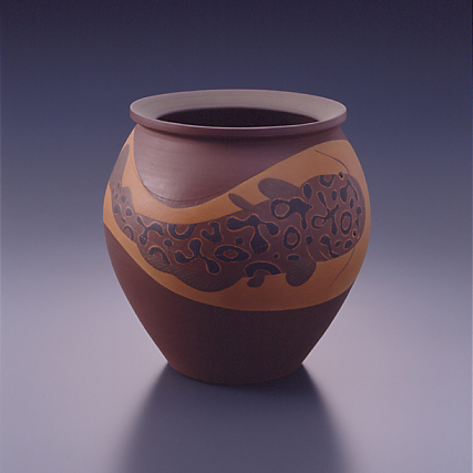 Vase with Inlaid “Ice Melting Pond” , Salt Glaze