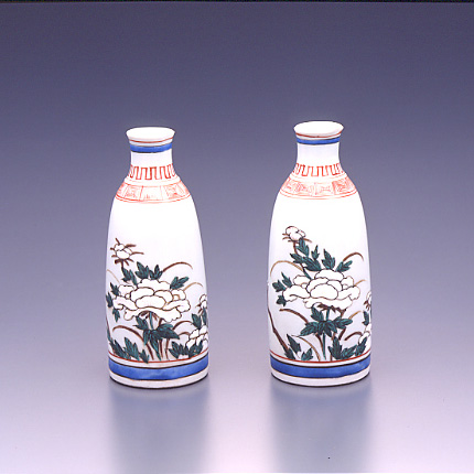Gourd Shaped Large Sake Bottle with Circle Design, Overglaze Enamels