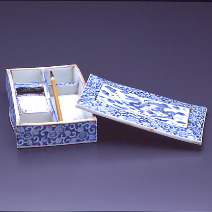 Box with Dragon and Foliage Scrolls Design, Underglaze Blue